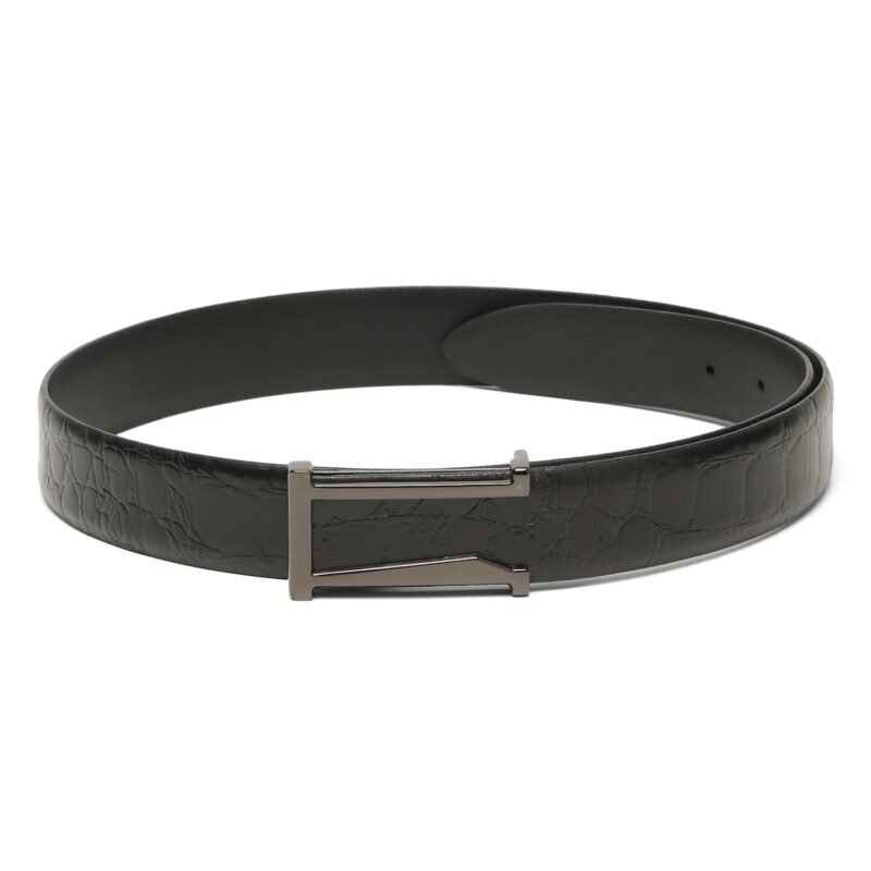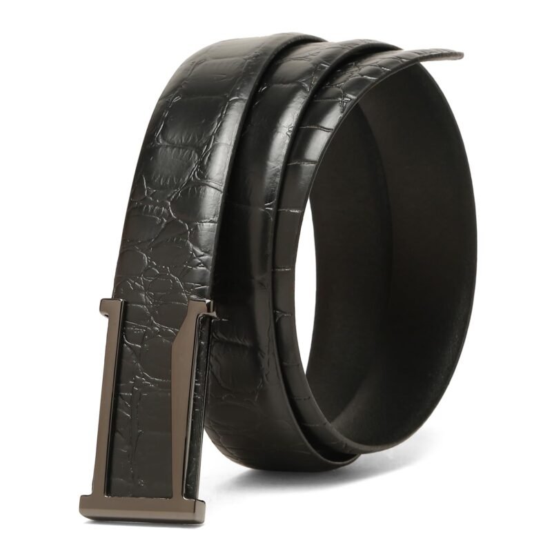 Black Camouflage Textured Genuine Leather Men’s Belt – Stylish Adjustable Pin Buckle