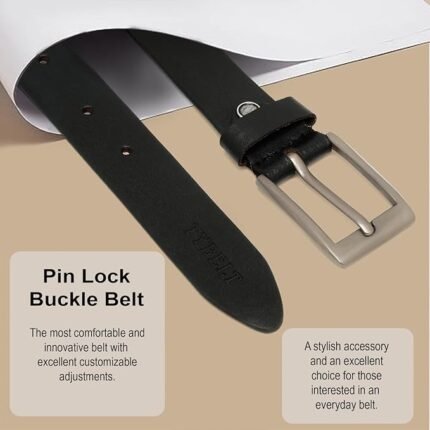 Black Genuine Leather Men’s Belt with Polished Silver Pin Buckle