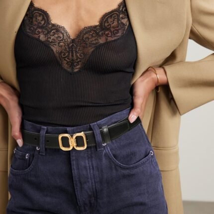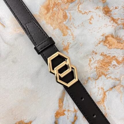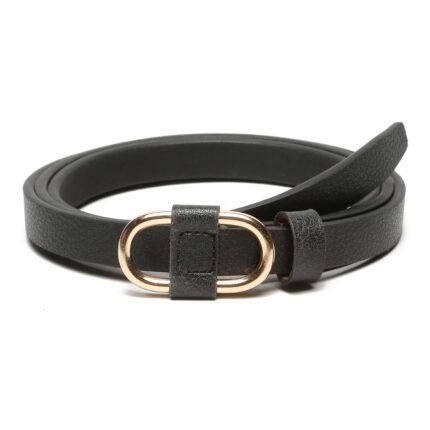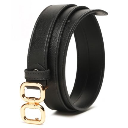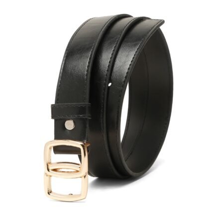 Black PU Leather Ladies Belt with Gold Square Pin Buckle – Adjustable Stylish Belt