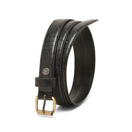 Black Textured Croc Pattern PU Leather Belt with Antique Gold Buckle