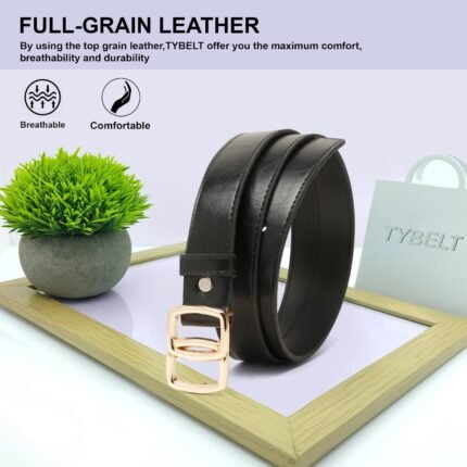 TYBELT Black Women’s Vegan Leather Belt – Adjustable Stylish Belt for Dresses & Jeans