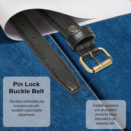 Classic Croc Pattern Black PU Leather Belt with Vintage Gold Metal Buckle