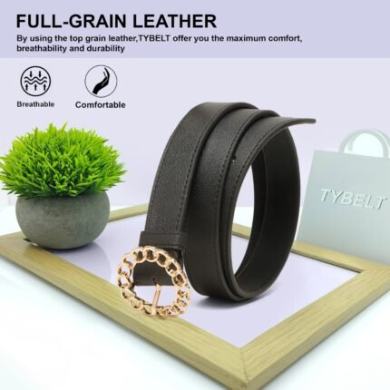 TYBELT Women’s PU Leather Belt | Golden Chain Pin Buckle