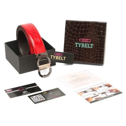 TYBELT Women’s Red Genuine Leather Belt | Croc Pattern Finish & Designer Pin Buckle – Adjustable Fit