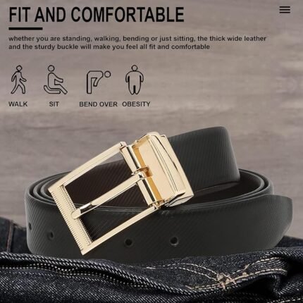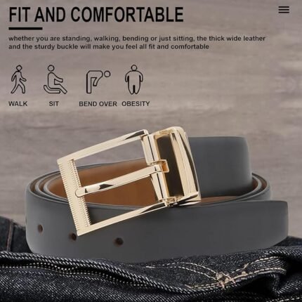 Italian Reversible Leather Belt for Men | Adjustable Pin Buckle |Formal Belts for Men