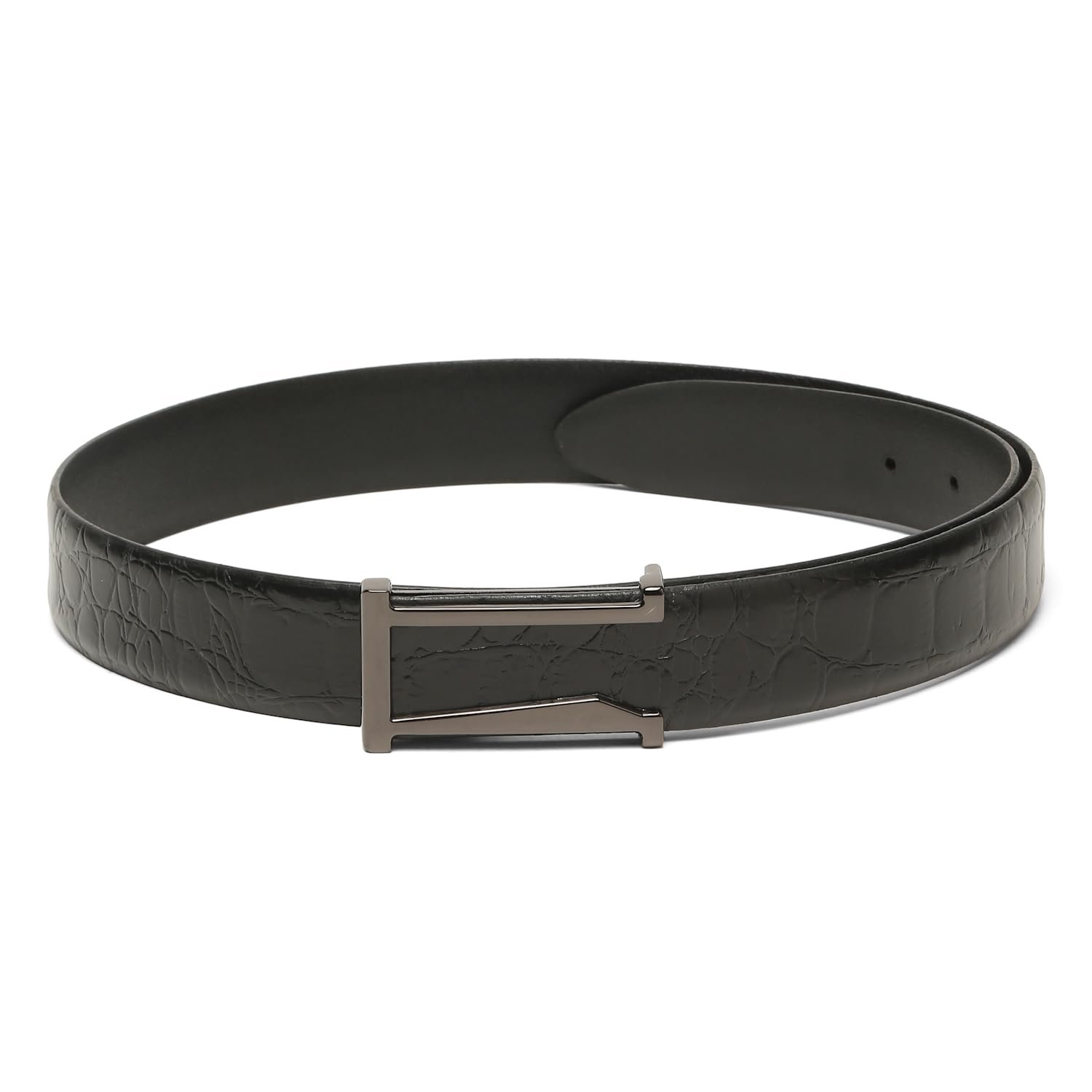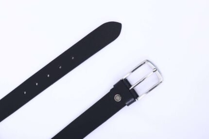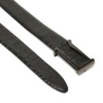 - Sleek gunmetal buckle belt, offering a modern and stylish alternative to traditional buckles in designer men’s belt fashion.
