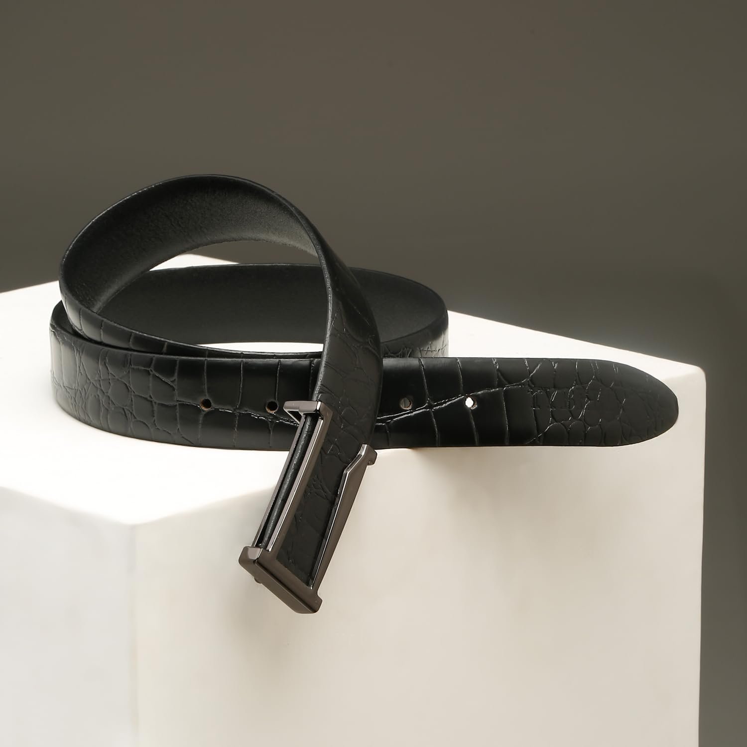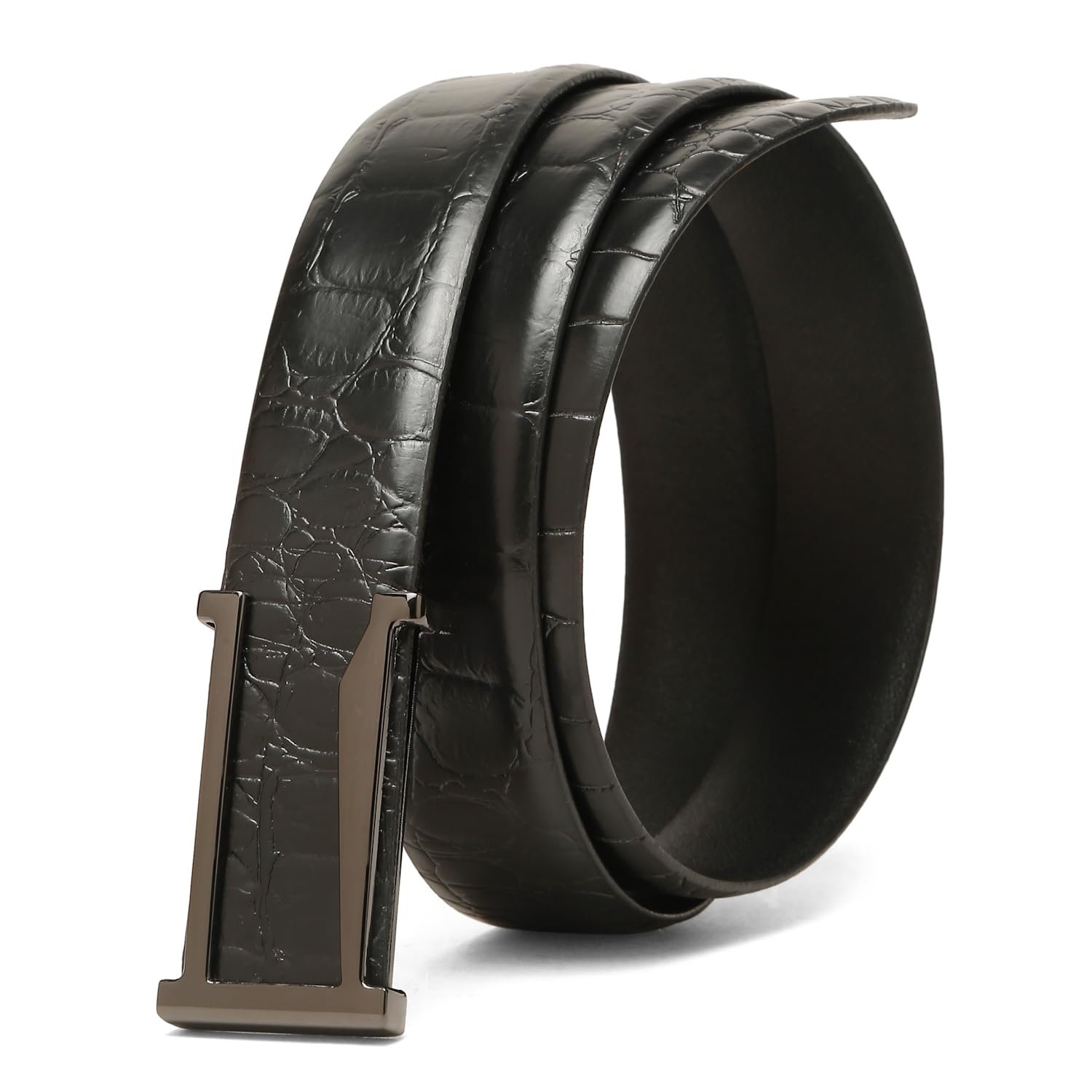 - Black crocodile leather belt for men, a trending choice for a sophisticated and textured look in men’s accessories 2025.