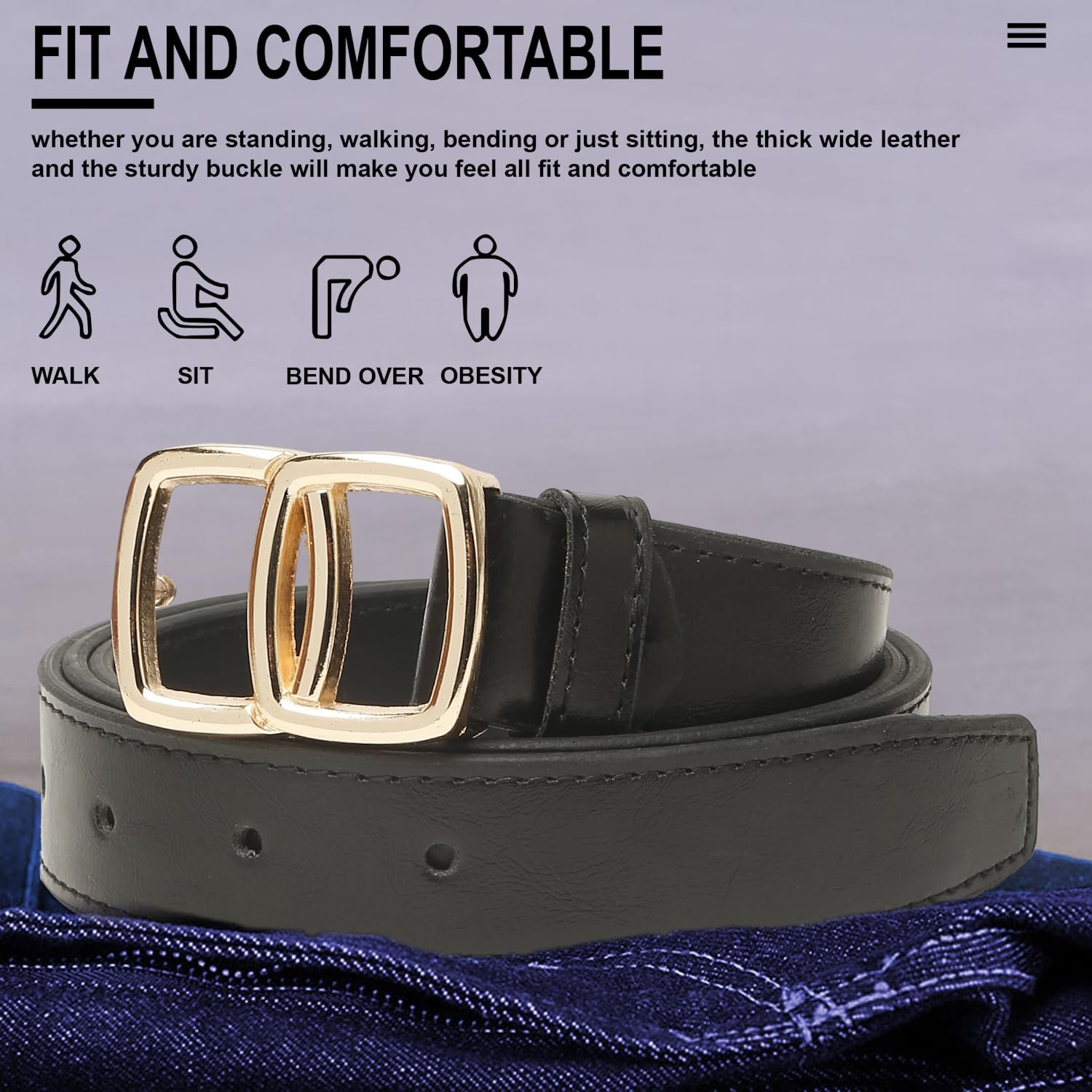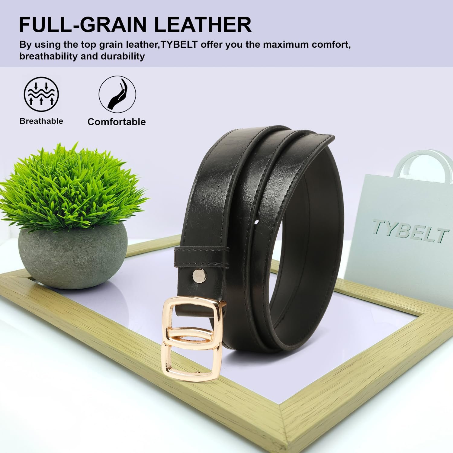 - Classic Golden Square Buckle – Designed with a shiny gold buckle, this belt adds sophistication to both casual and formal outfits.