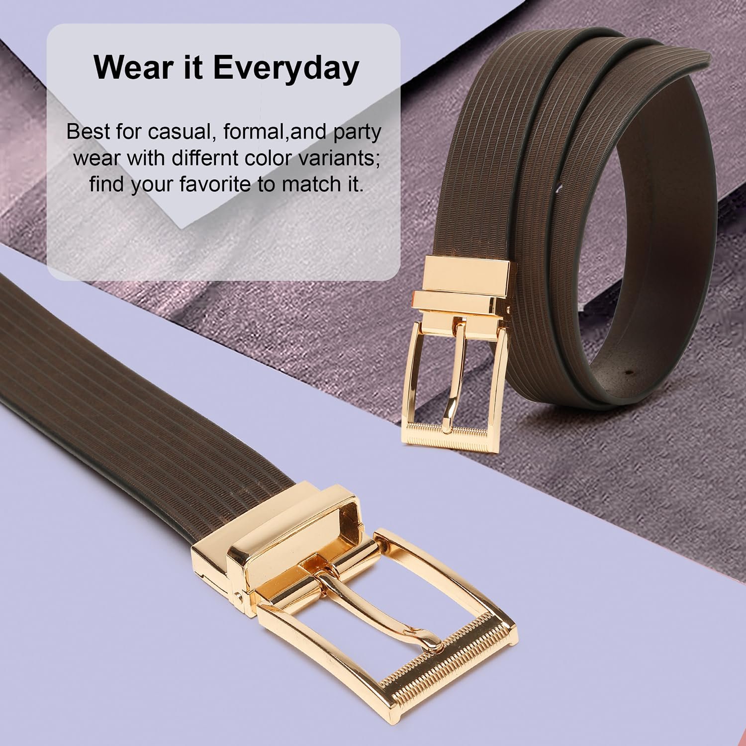 - Premium Gold Pin Buckle – Features a polished gold-tone pin buckle belt design that delivers a classic yet modern look, perfect for business attire, weddings, and smart casual outfits.
