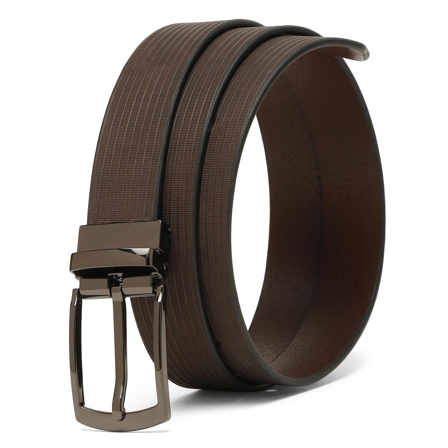 • 100% Genuine Leather Belt for Men – Made from premium full-grain genuine leather, this brown textured men’s belt offers superior durability, a refined finish, and timeless style for formal, casual, and office wear.