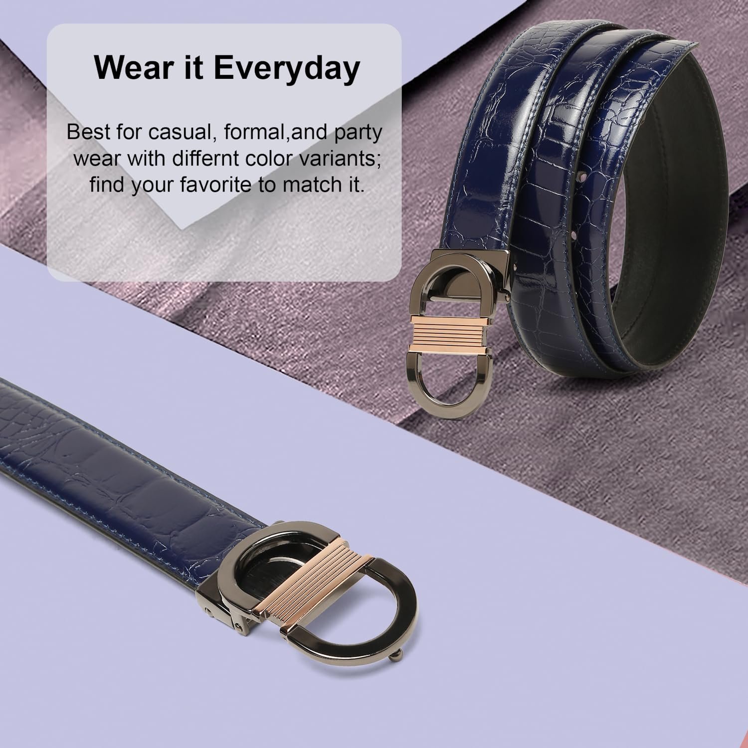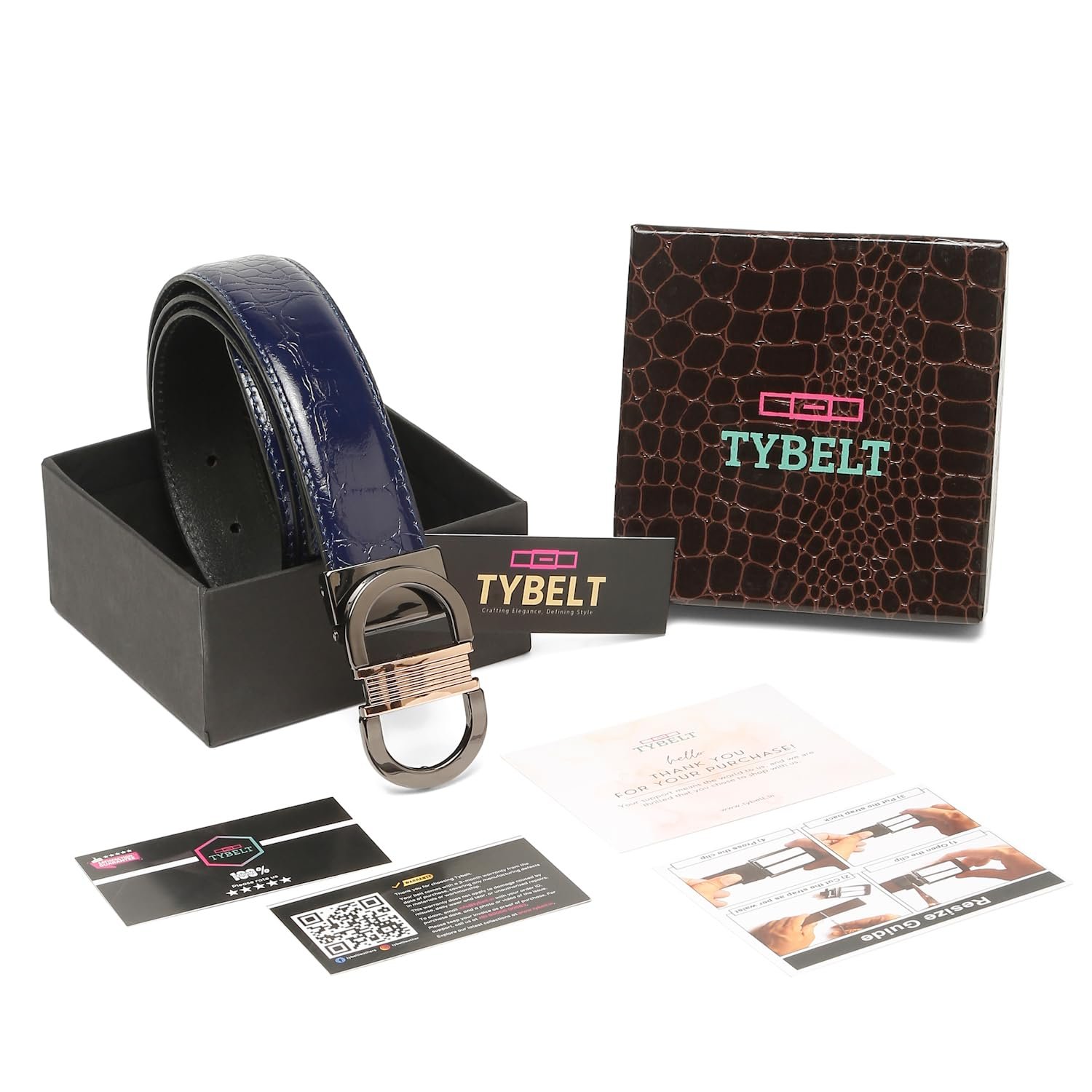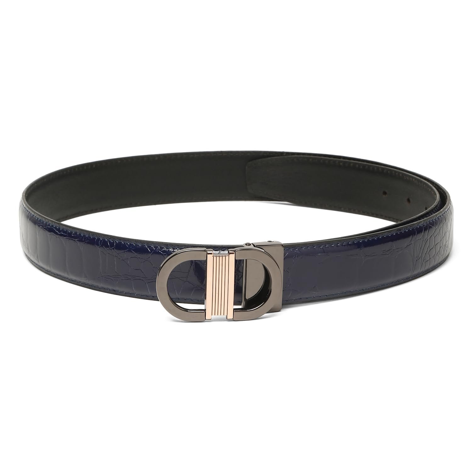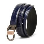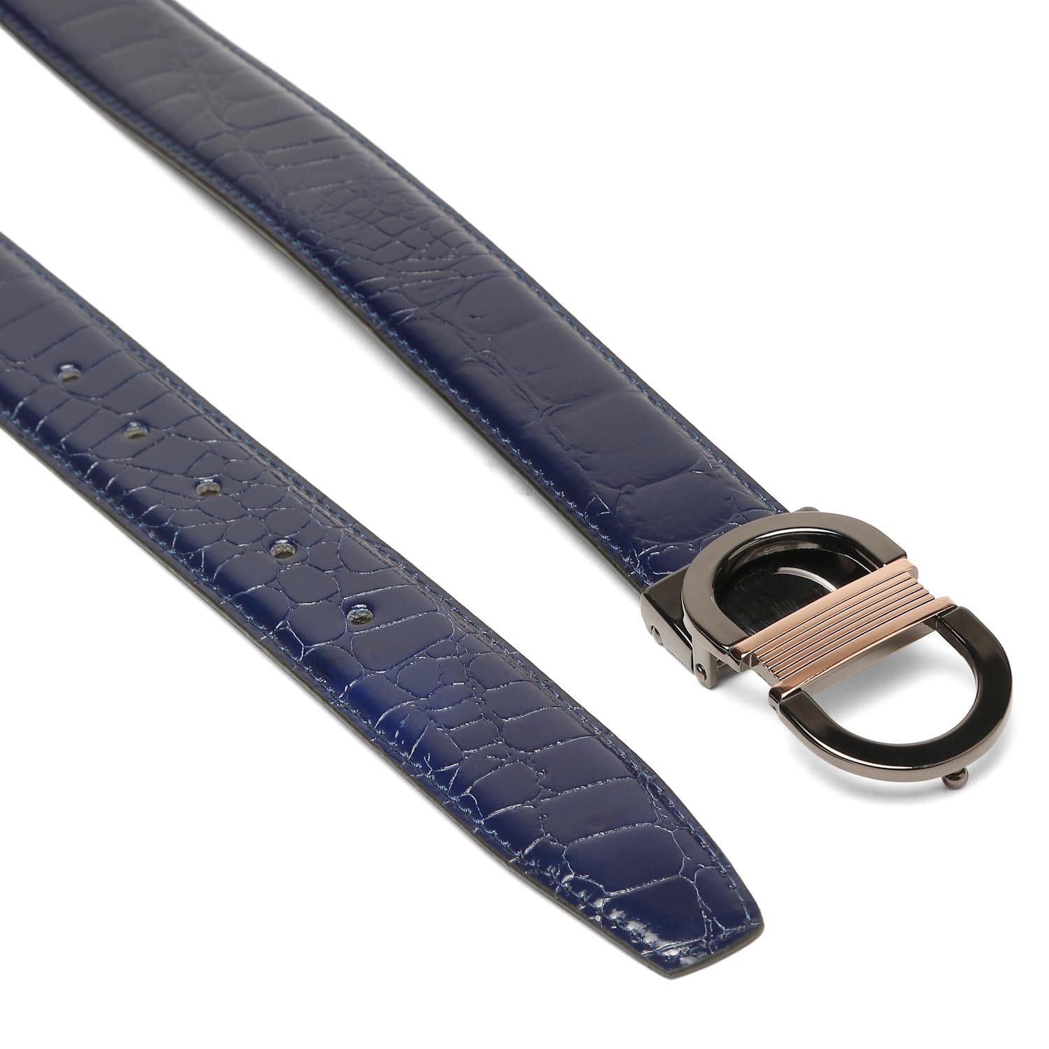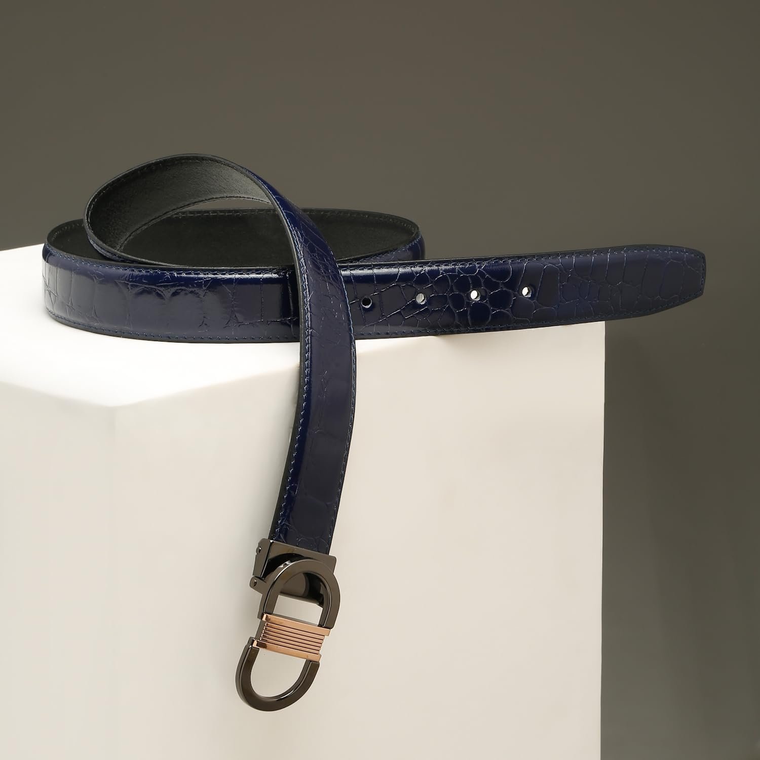 Glossy Blue Croc Texture Leather Belt for Men – Adjustable with Unique Designer Buckle