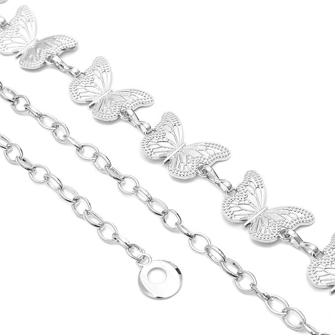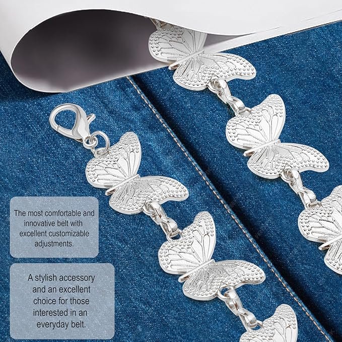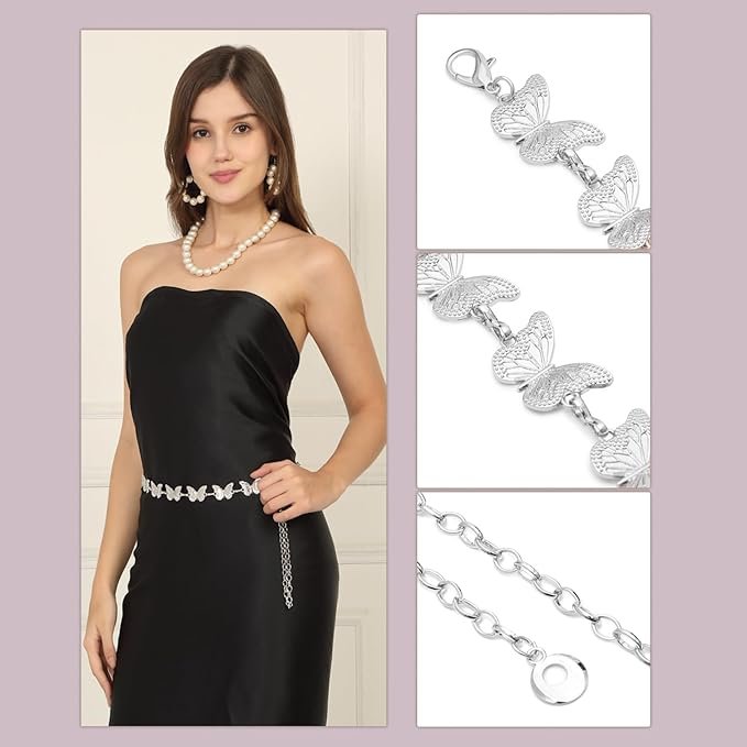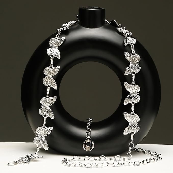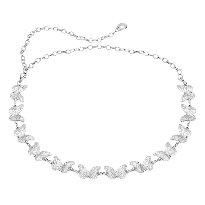 - TYBELT Silver Butterfly Chain Belt for Women – Stylish silver metal waist chain with butterfly design, perfect for sarees, lehengas, gowns, and western dresses.