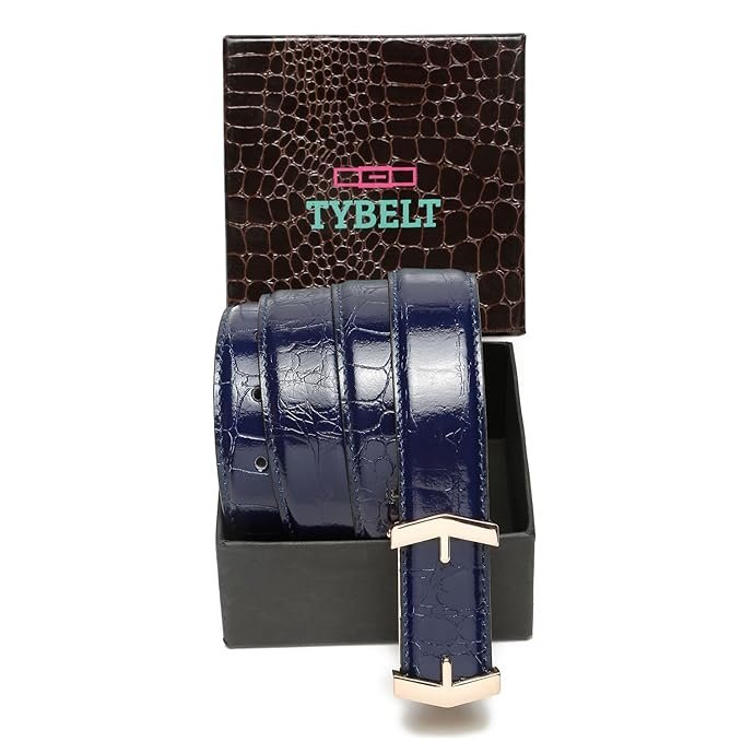 TYBELT Blue Genuine Italian Leather Belt for Men | Adjustable Waistband up to 42 Inches