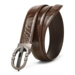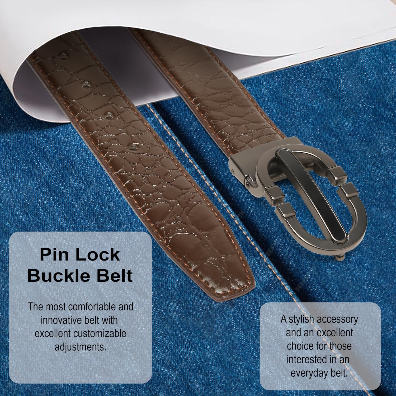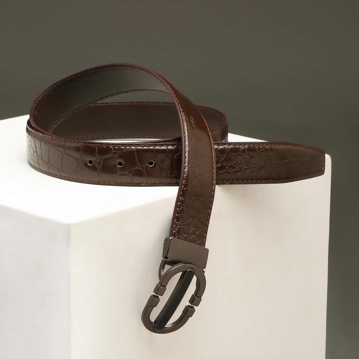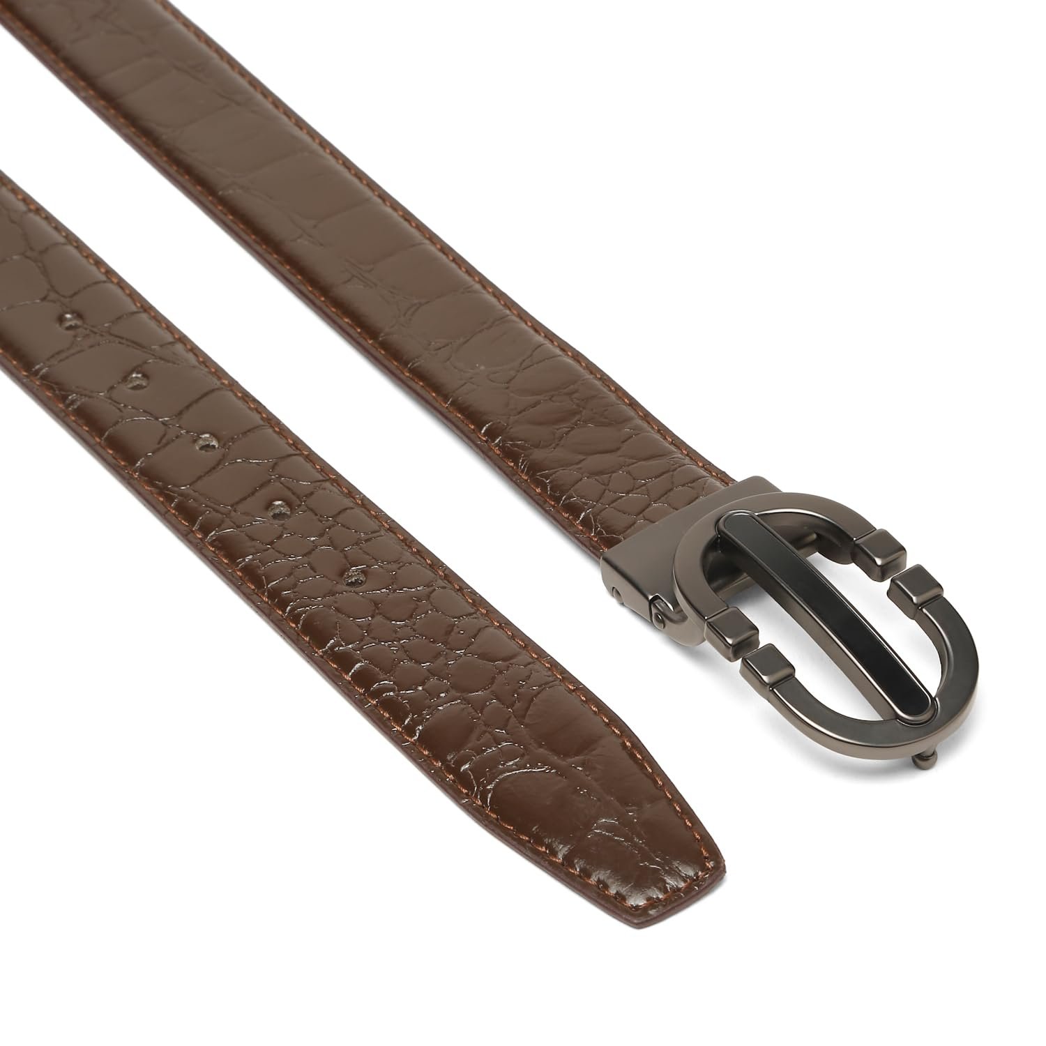 • This genuine leather belt features a trendy brown crocodile embossed texture, creating a luxurious and distinctive look.