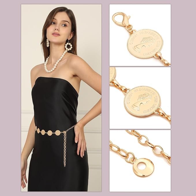 • Durable & Lightweight – Made from premium gold-tone metal, this fashion chain belt is strong, long-lasting, and comfortable for all-day wear.