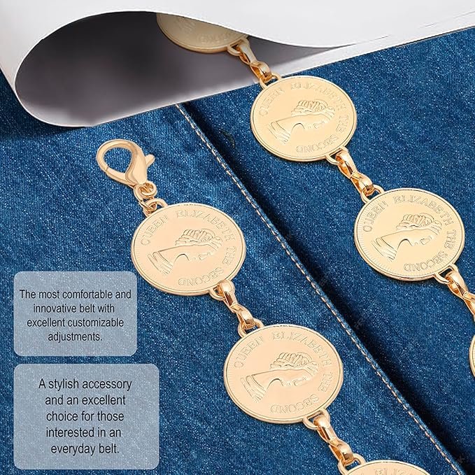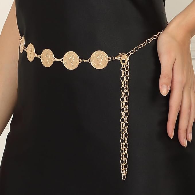 TYBELT Women’s Gold Coin Waist Chain Belt – Adjustable Metal Belt