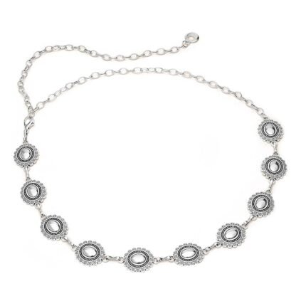 TYBELT Women’s Antique Silver Waist Chain Belt – Adjustable Ethnic Belt